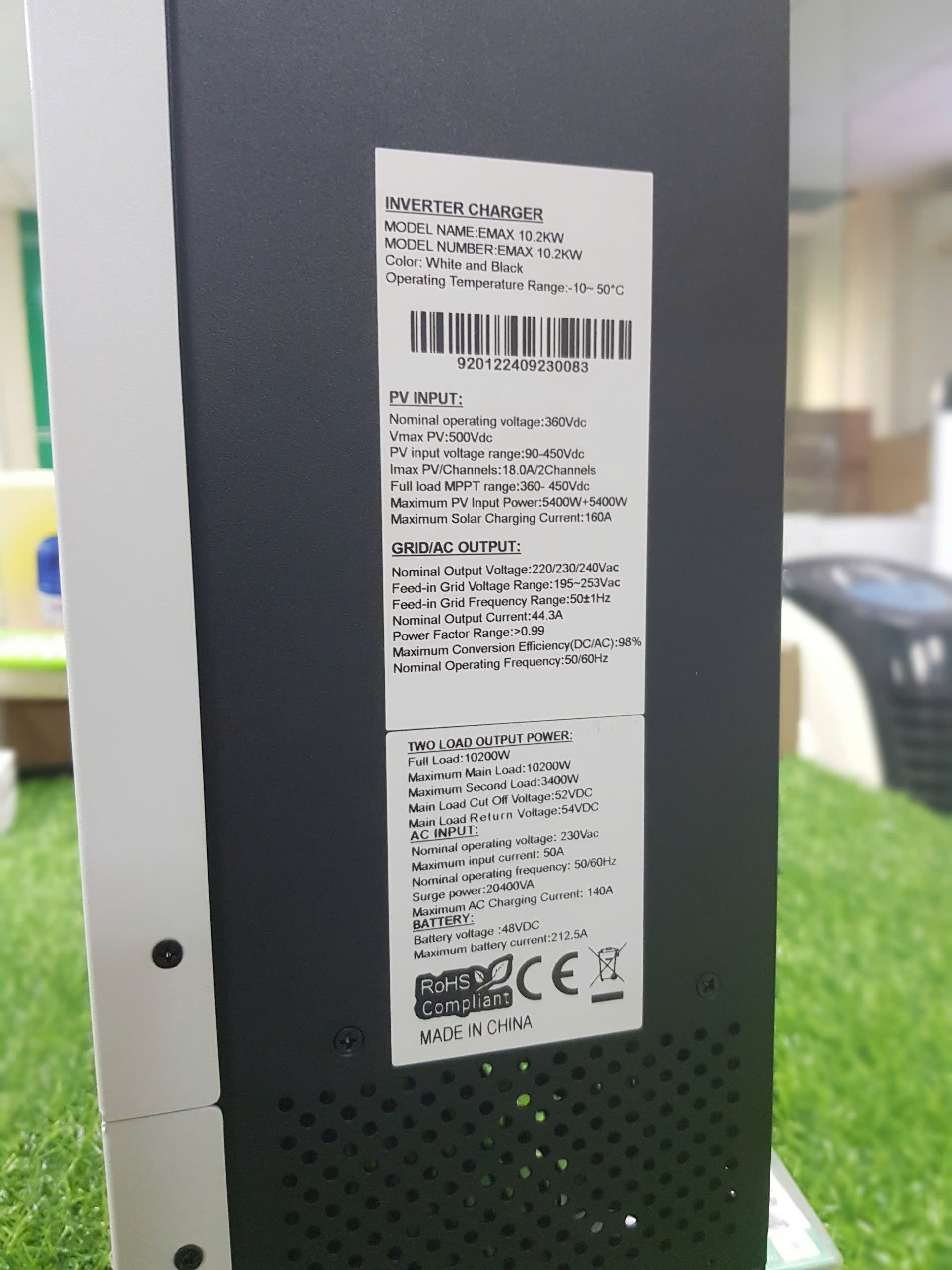 – Inverter Hybrid ECOPOWER EMAX 10.2KW là biến tần đa chức năng: chạy độc lập trực tiếp từ tấm pin (không cần ac quy, không cần lưới), bù lưới.