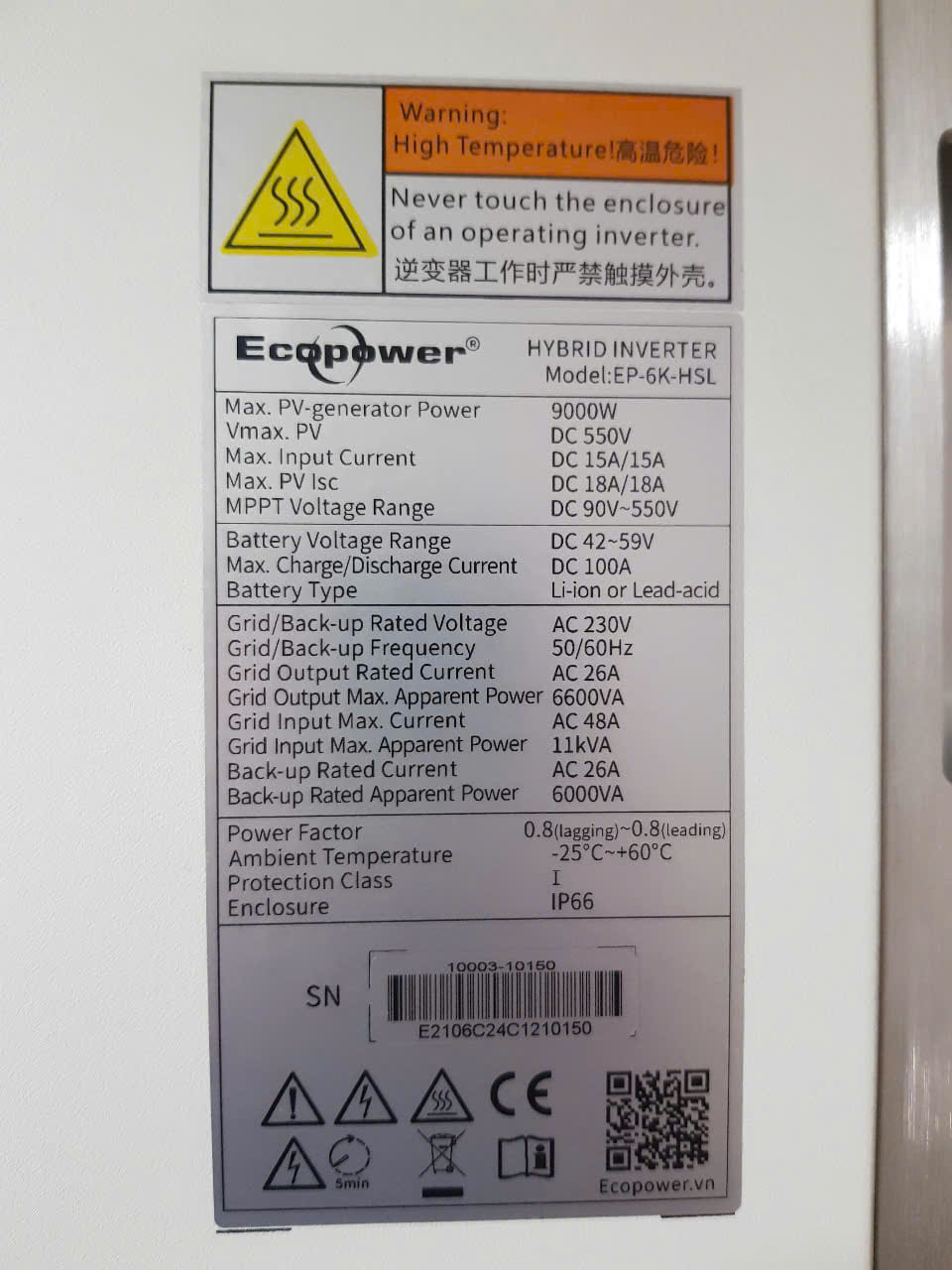 Inverter Hybrid Ecopower 6KW HI-6K-SL là một sản phẩm tốt cho những người muốn sử dụng điện năng lượng mặt trời để cung cấp điện cho gia đình hoặc văn phòng làm việc của mình.