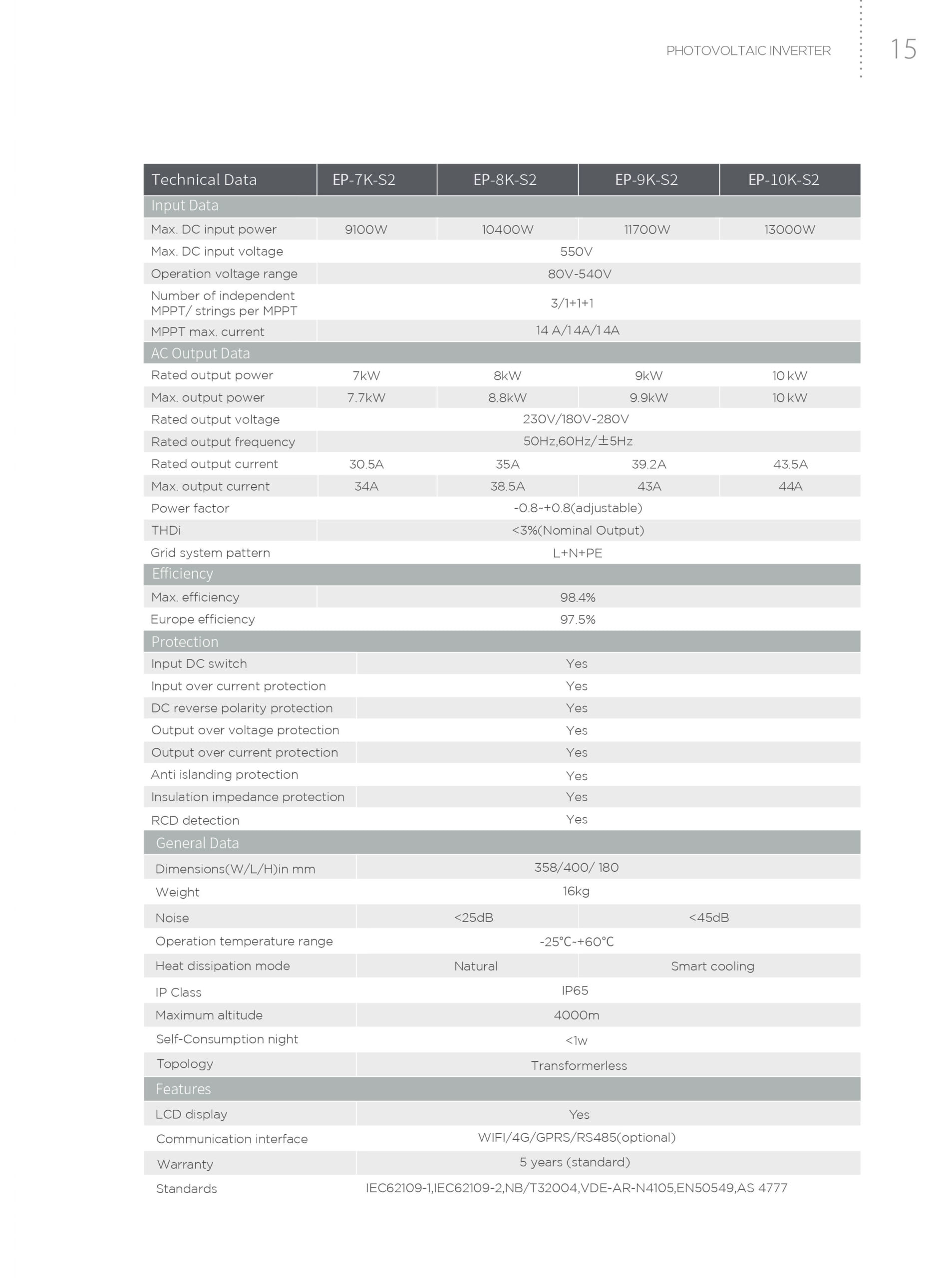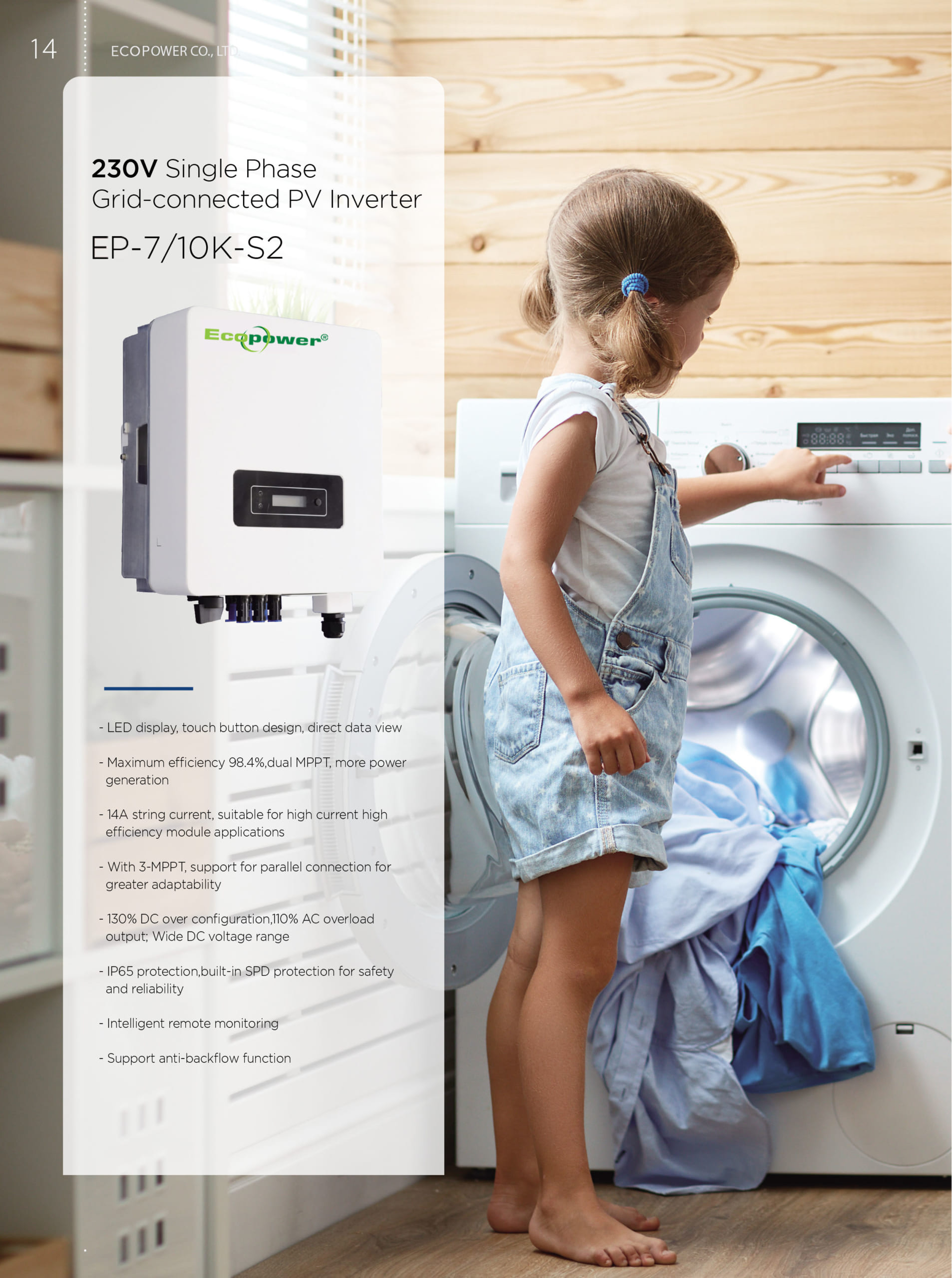 Inverter On grid Ecopower 10KW EP-10K-S2 có những tính năng nổi trội sau: